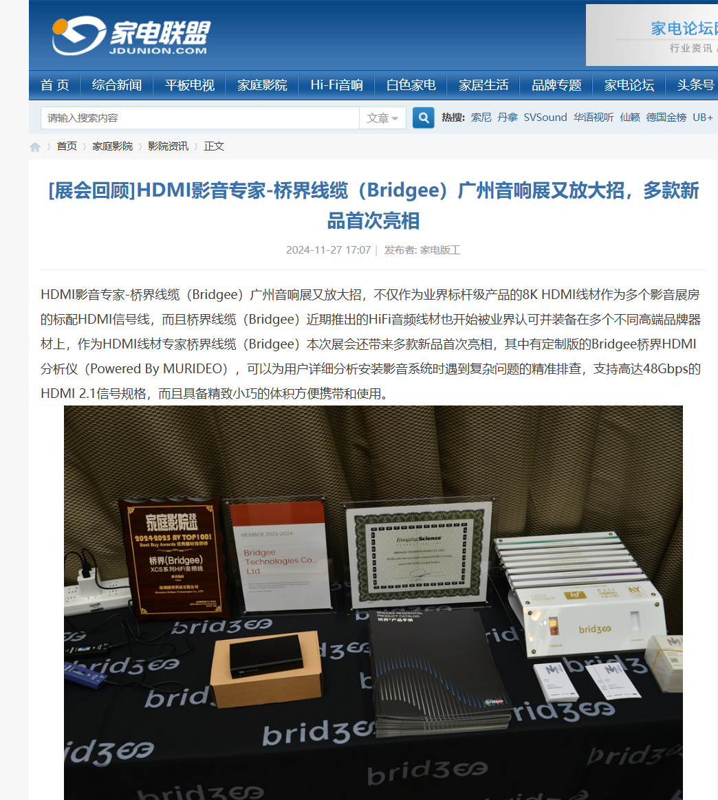 桥界bridgee在广州音响唱片展的精彩表现获国内权威媒体“家电论坛”重要报道